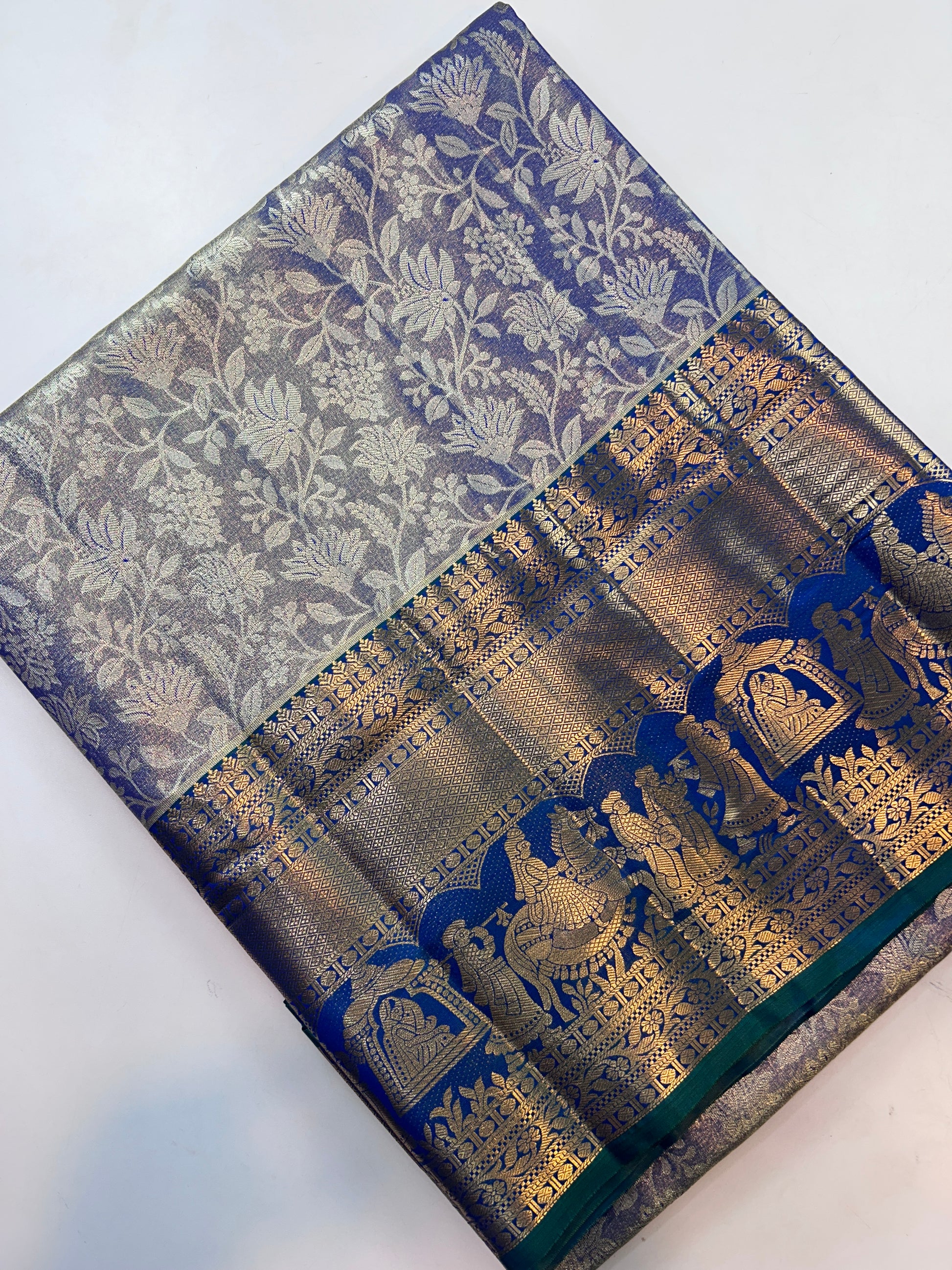 Beautiful semi kanchi pattu saree pure tissue jari wrap